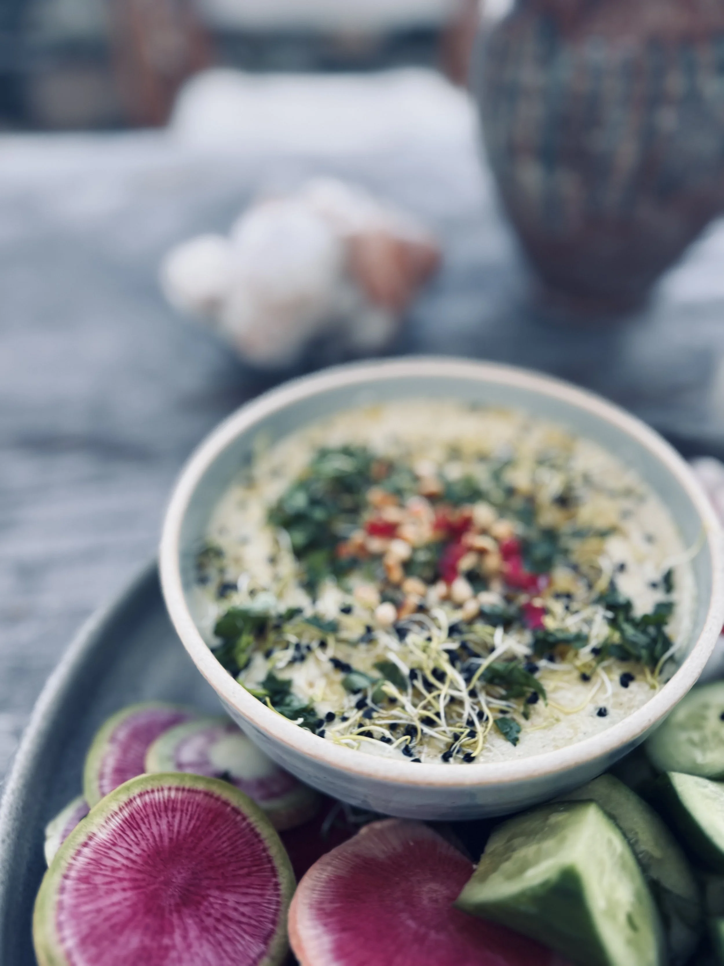 Now, I’m posting a zucchini dip, but this time I’m keeping the word hummus in the title—because it’s bean-free (perfect for those of us who have trouble digesting beans) yet still contains all the classic hummus ingredients. Honestly, it’s the closest thing I’ve ever tasted to the real deal. I truly don’t mean to offend anyone with the name, and I hope I don’t!