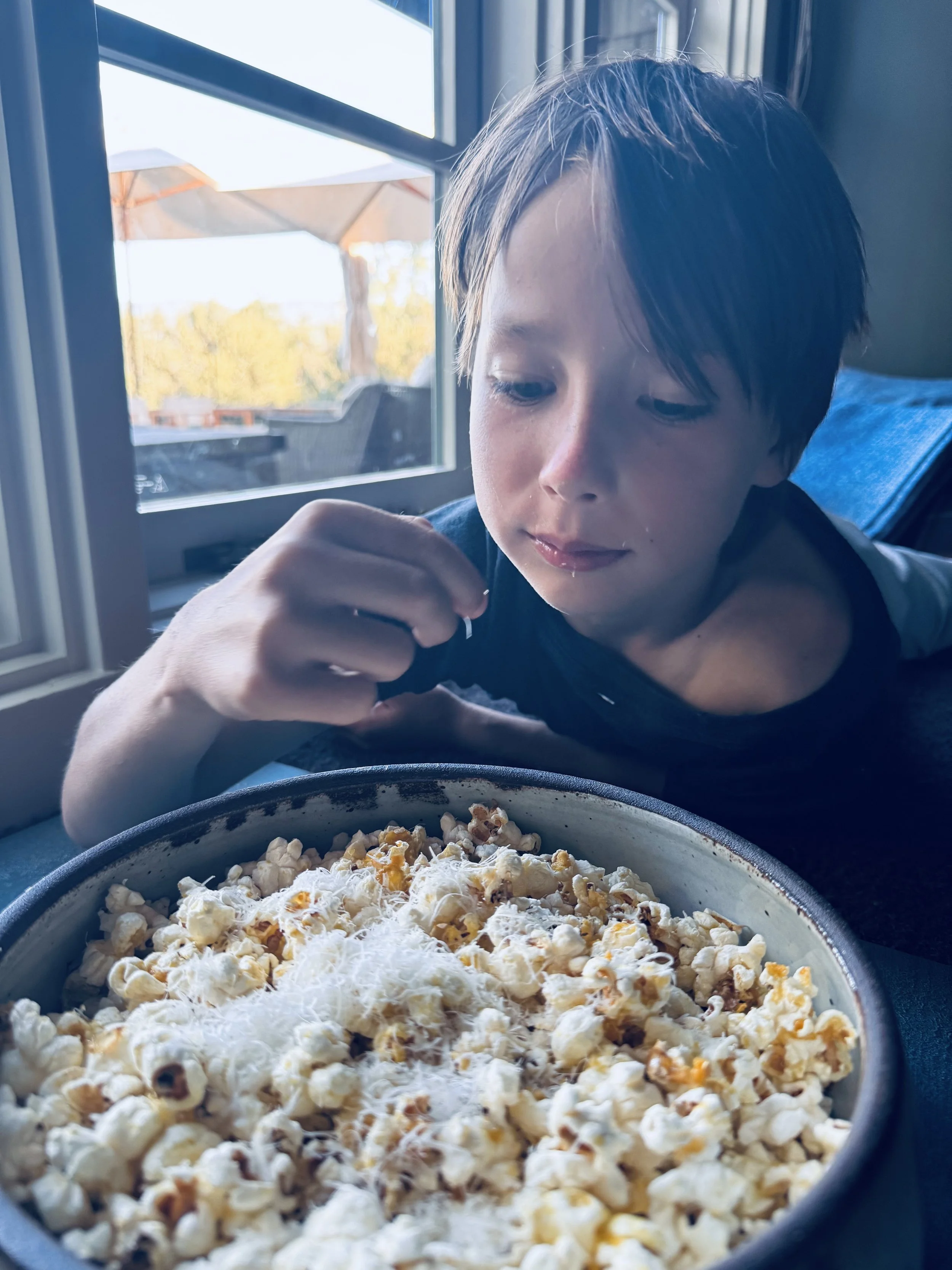 You can personalize it too—try truffle salt, herb salt, fennel pollen, or even a splash of Tabasco. However you make it, this popcorn is the ultimate afterschool treat.